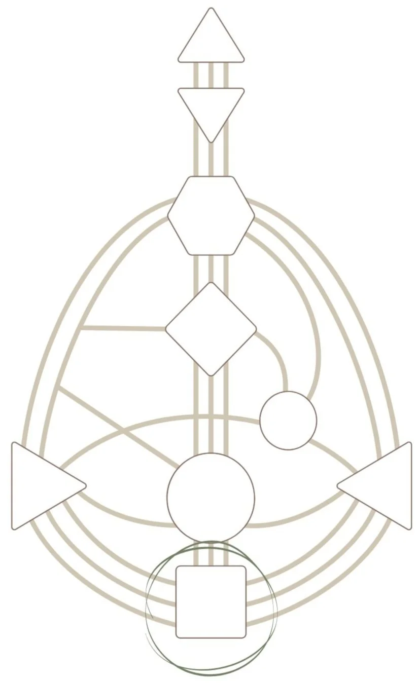 In deiner Human Design Chart findest du neun Center. Jedes davon hat eine ganz unterschiedliche Aufgabe. Für das Thema Stress schauen wir uns heute das Wurzel-Center an. Es befindet sich ganz unten in der Mitte deiner Chart (siehe Abbildung).